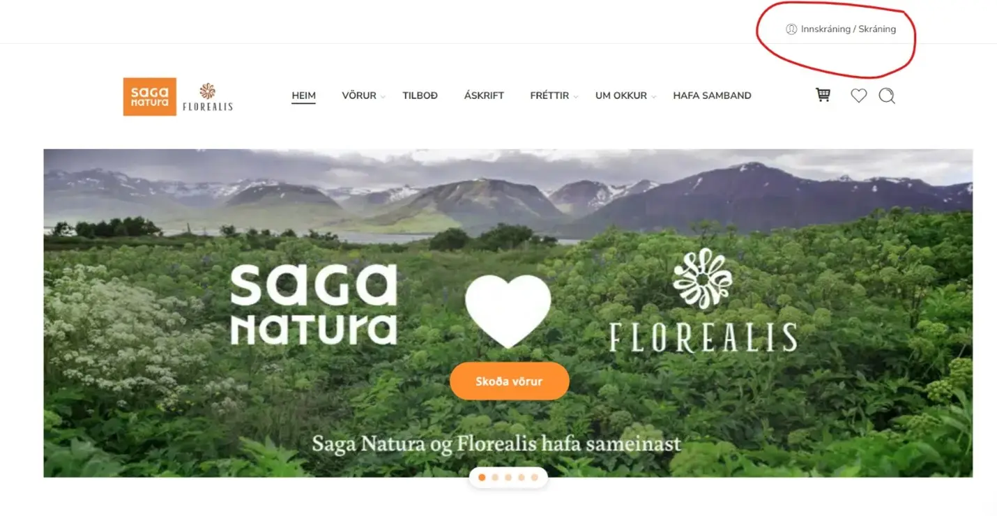 Þegar viðskiptavinur stofnar áskrift velur hann „áskriftir“ í efstu stikunni á heimasíðu Saga Natura.